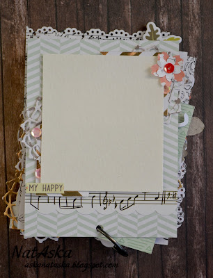 Некоторые странички, у меня специально пустые, без фото и мало украшений, это для того чтобы можно что-нибудь записать. А точнее мысли маленькой Агнии, они с папой любят разговаривать на разые темы: серьезные и нет...